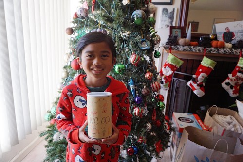 Everyday I start the mornings off with the news on tv. That may not always be the best idea because of how absolutely depressing the entire world is right now, but it’s always a good idea to keep updated. While I make breakfast for the boys, Kole is always paying attention to the news as well. Last year he was so concerned and felt such sadness for the victims of the Tubbs Fire that he asked me if there was something we can do. (And yes, that made me cry!) So that was the beginning of a new family holiday tradition. As a family, we decided to make a donation cup, which Kole decorated himself, and leave the cup in the middle of the dining table during Christmas and ask the family if they’d like to donate.